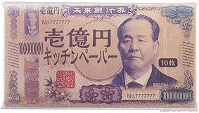 新壱億円パッケージにキッチンペーパー10枚を セットした面白さ満点の商品です。