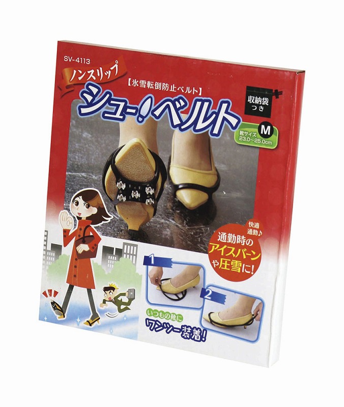 5本のスパイクが雪面・氷面をしっかりグリップ。柔軟性があり、装着が簡単にできます。シンプルデザインで収納袋に入れて携帯出来ます。