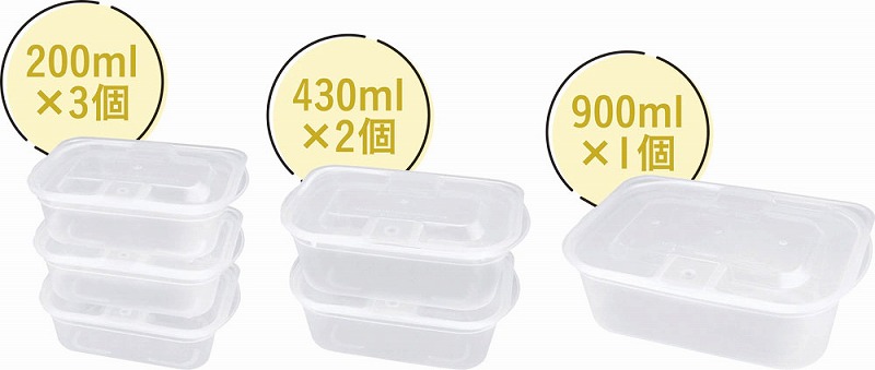 200ml3個、430ml2個、900ml1個のセット