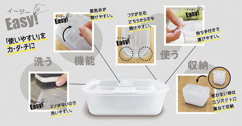 日本製の簡単便利なレンジ容器各種のセット。蓋をしたまま簡単にレンジ対応。