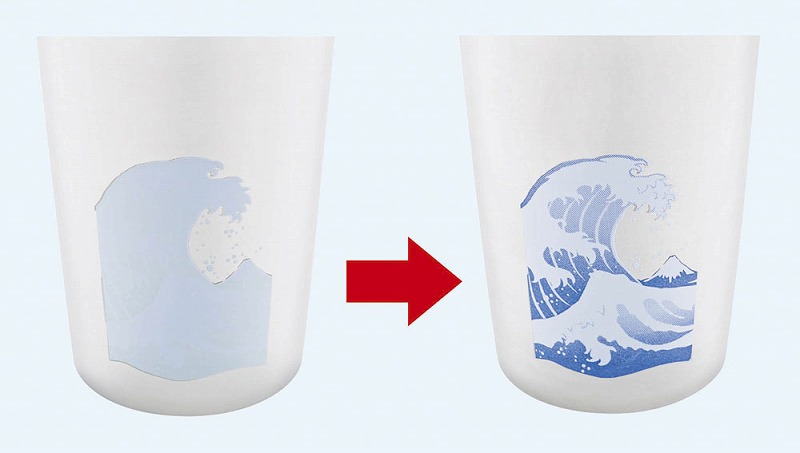 熟練の技巧 信頼の日本製。冷たい飲み物を注ぐと絵柄の色が変化します。