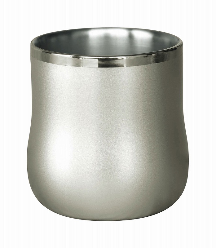 二重構造なので氷を入れても結露が出にくく温かさ・冷たさが長持ちします。18-8ステンレスで丈夫で衛生的です。外面にポリエステル樹脂塗装を、口元はミラー仕上げを施し、高級感に満ちた仕上がりに作り上げました。新潟県燕市の工場で造られた安心・安全・高品質を約束するマーク「メイド・イン・ツバメ」認定取得商品です。