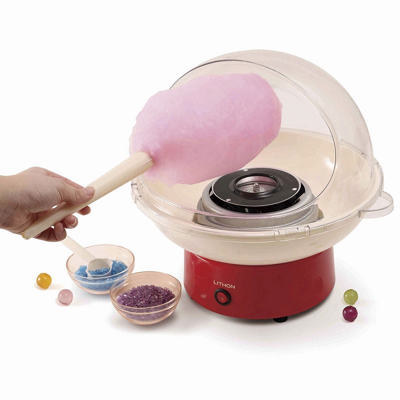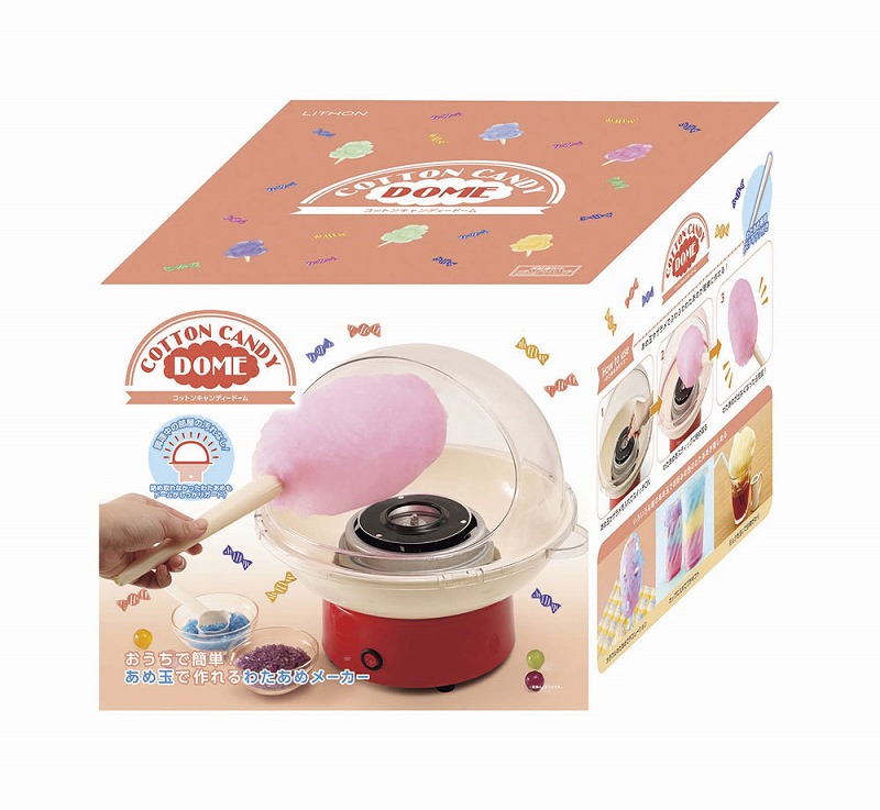 おうちで簡単!あめ玉で作れるわたあめメーカー。調理中に部屋が汚れない!絡め取れなかったわたあめもドームがしっかりガード!わたあめ専用スティック付き。