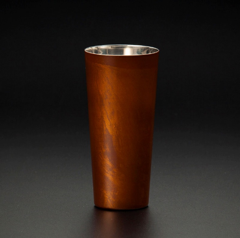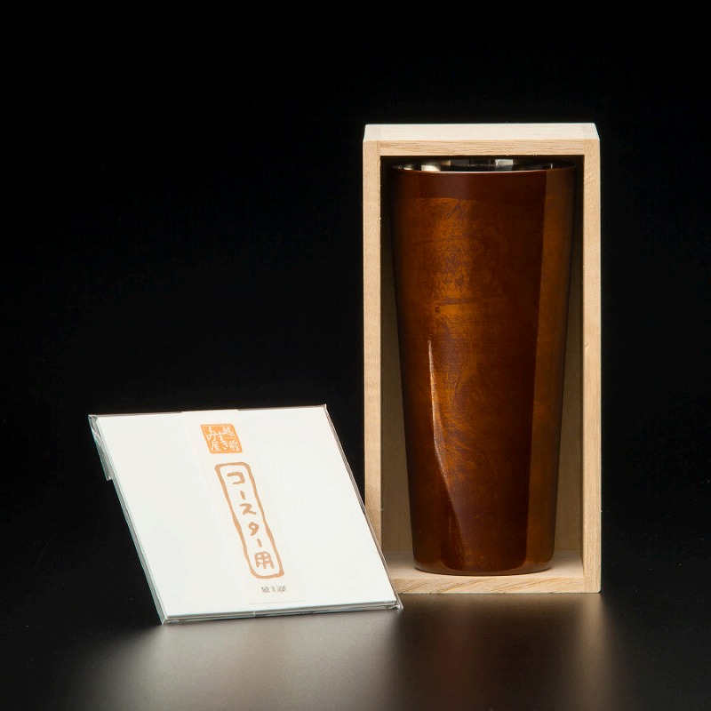 漆磨漆流し2重ピルスナーカップ赤ビャクダン 350ml (本体・木箱への名入れ対応可)