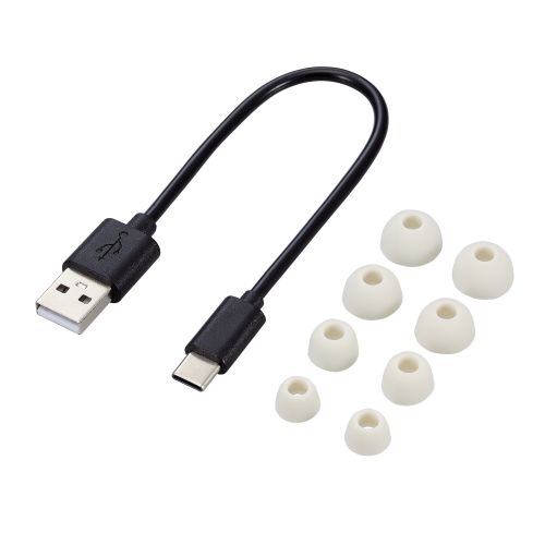 充電ケース、USB充電ケーブル(USB-A to USB Type-C(TM))、イヤーキャップ(XS,S,M,L:Mは本体装着済み)各1組