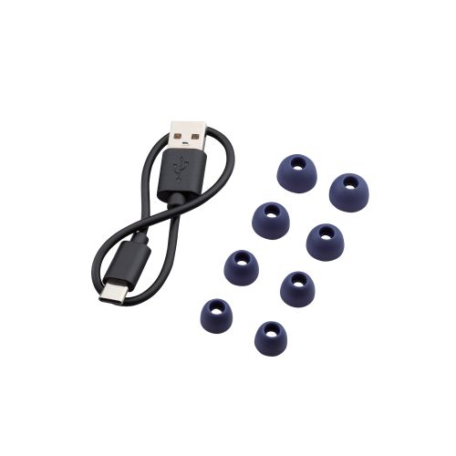 充電ケース、USB充電ケーブル、イヤーキャップ(XS,S,M,L:Mは本体装着済み)各1組