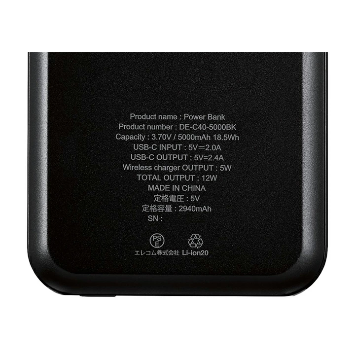 ■ 出力:合計12W、USB Type-C(TM)(USB-C(TM))ポートは5V2.4A、ワイヤレス充電は5W