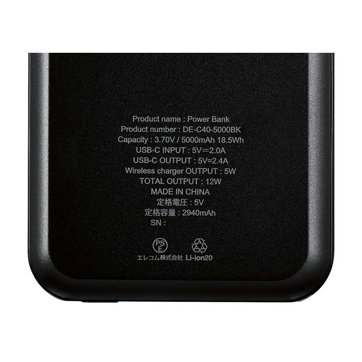 ■ 出力:合計12W、USB Type-C(TM)(USB-C(TM))ポートは5V2.4A、ワイヤレス充電は5W