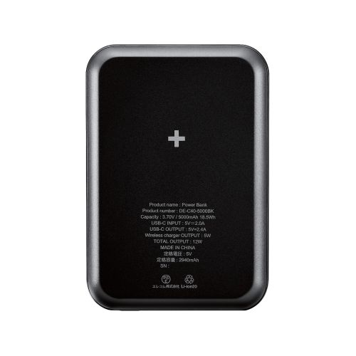 ”福利厚生 周年 卒業 記念品” 『エレコム モバイルバッテリー 5000mAh 12W/入出力(TypeC×1)/ワイヤレス充電/MagSafe対応 ブラック DE-C40-5000BK』