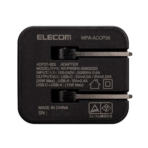 定格出力電流:USB Type-C(TM)(USB-C(TM))ポートのみ使用時:5V時3A / 9V時2.22A、 USB-Aポートのみ使用時:5V時2.4A、 2ポート同時出力時:合計最大15W