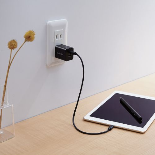 ●USB Type-C(TM)(USB-C(TM))ポートとUSB-Aポートの合計2ポートを搭載し対応するスマートフォン、タブレットなどを超高速充電できるUSB AC充電器です。