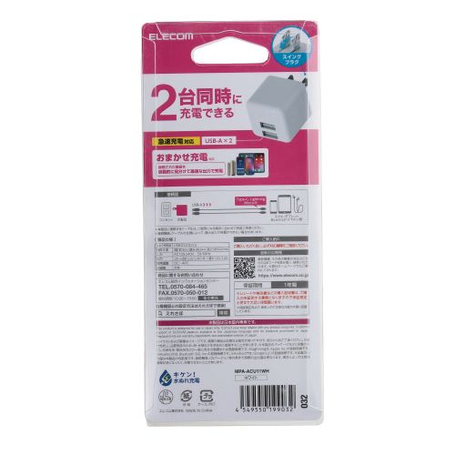 USB Aポートを2つ搭載し、接続された機器を自動検知し最適電流で充電できるおまかせ充電に対応しています。