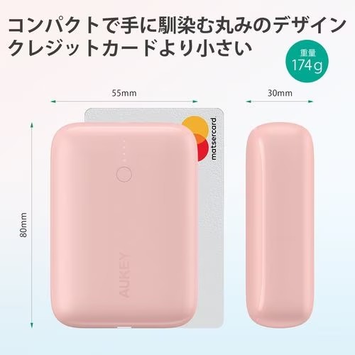 AUKEY PB-N83S-PK モバイルバッテリー Basix Mini 10000mAh 20W PD対応 SCP A×1 C×1 ピンク