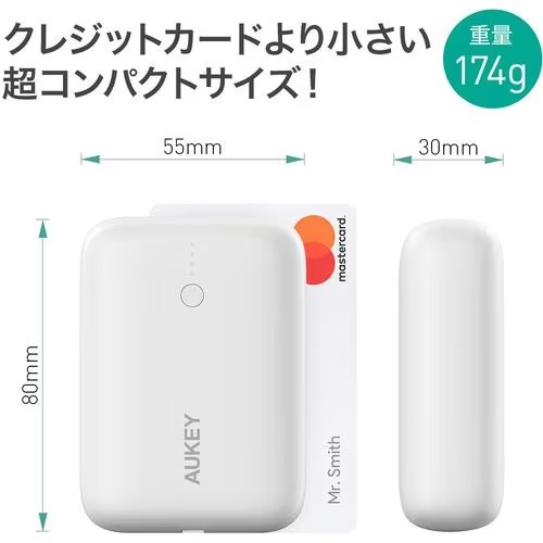 ”もらって嬉しい 記念品” 『AUKEY PB-N83S-WT モバイルバッテリー Basix Mini 10000mAh 20W PD対応 SCP A×1 C×1 ホワイト』