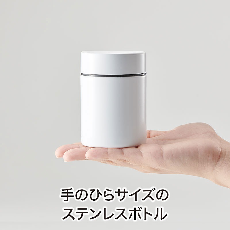 マグカップがわりにもなる、手のひらサイズのステンレスボトルです。