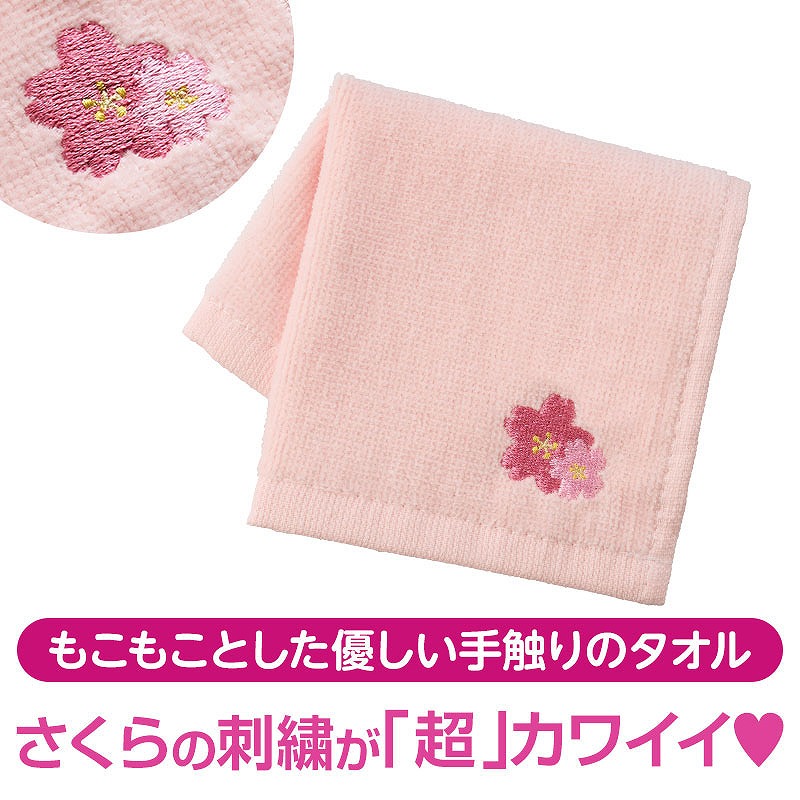 さくらのワンポイント刺繍がカワイイ、ハンドタオルです。