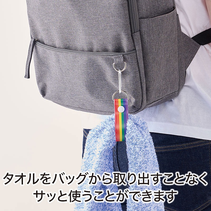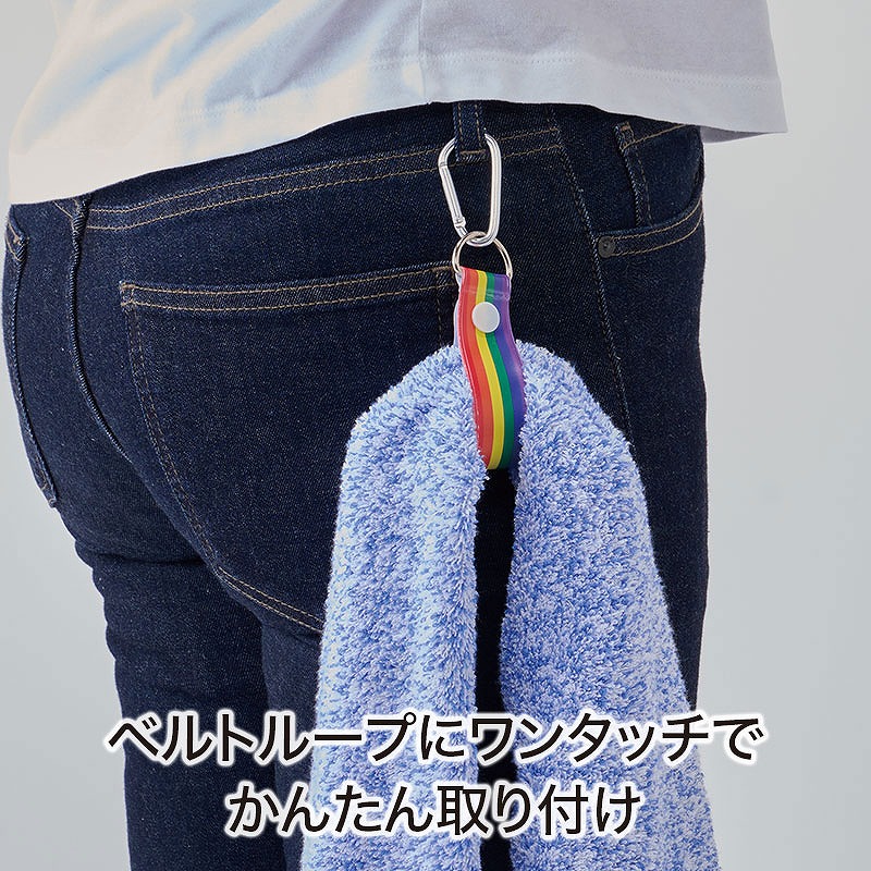 バッグやベルトループ等に取り付け、タオルをぶら下げておくと、