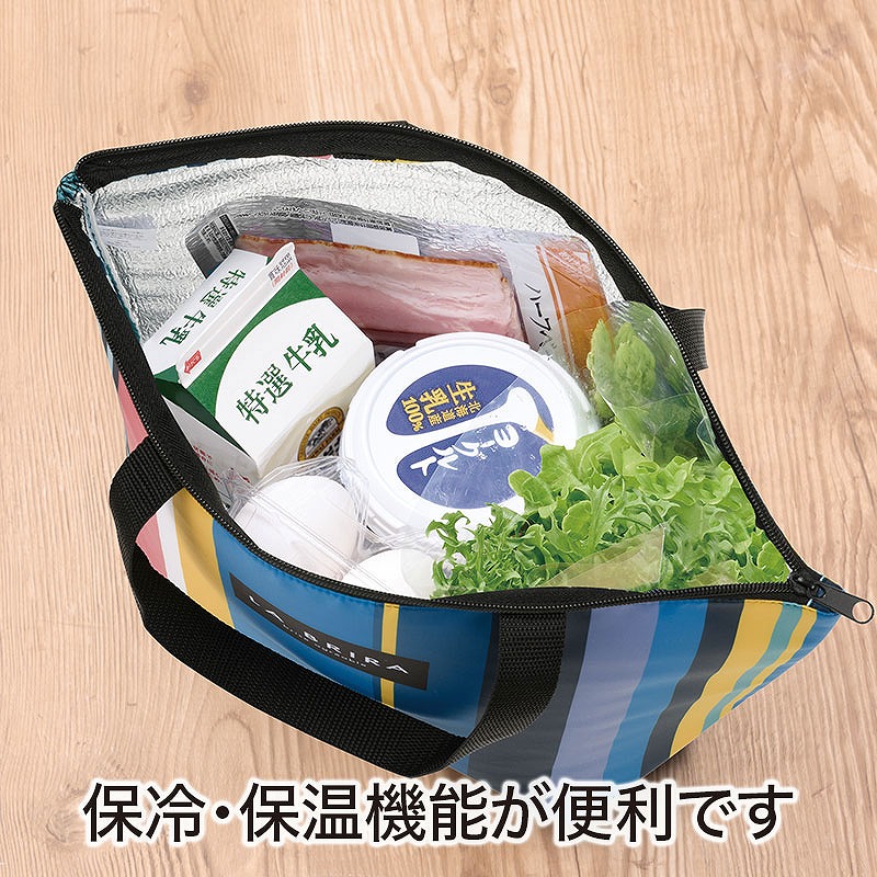 内側がアルミ蒸着仕様で保冷・保温機能があり、
