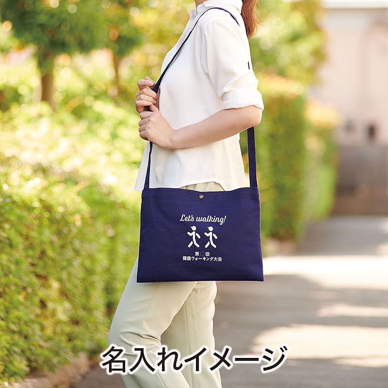 A4サイズも入る、シンプルで便利なサコッシュ。オリジナル印刷を入れれば、ノベルティ・販売品として需要の高い仕様です