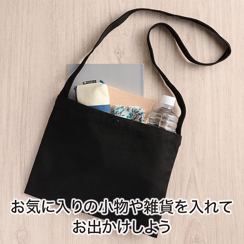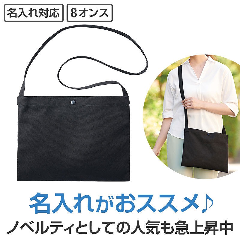 A4サイズも入る、シンプルで便利なサコッシュ。オリジナル印刷を入れれば、ノベルティ・販売品として需要の高い仕様です