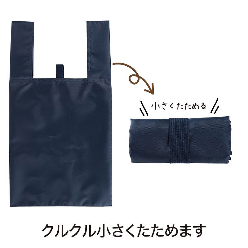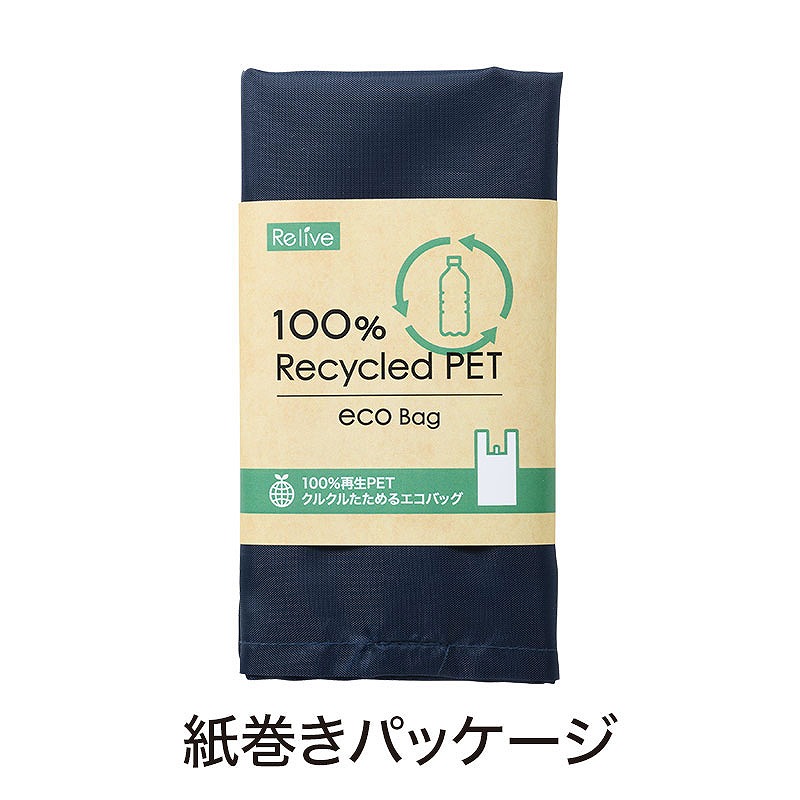 ”店舗 業務用 物販向け” 『リライブ 100%再生PET クルクルたためるエコバッグ ネイビー』