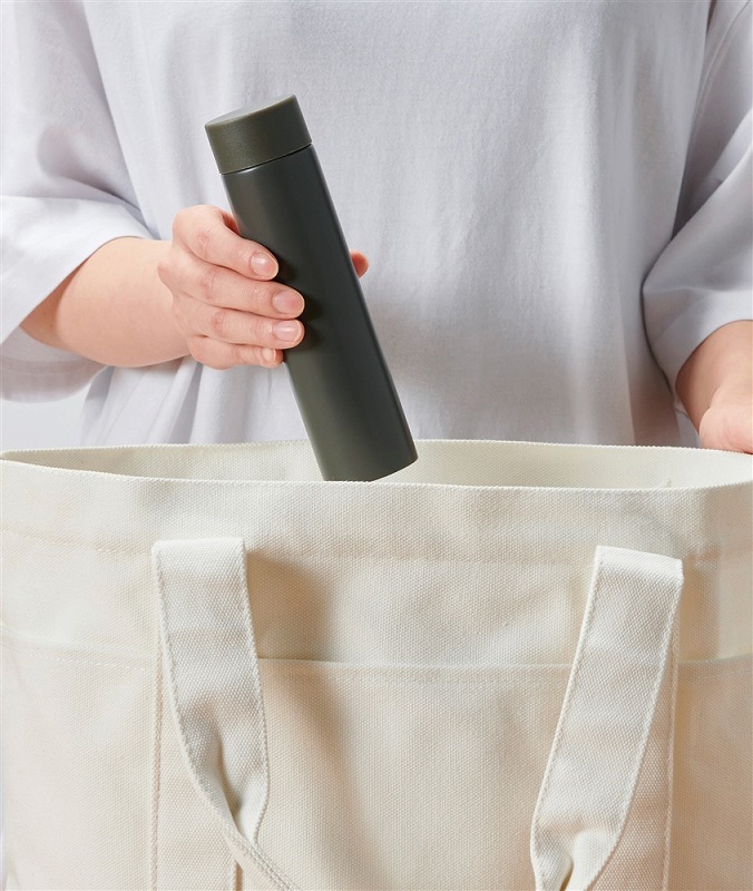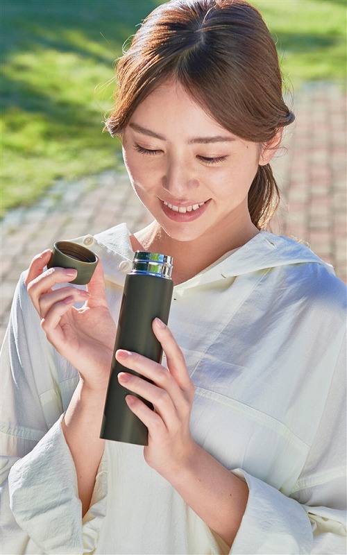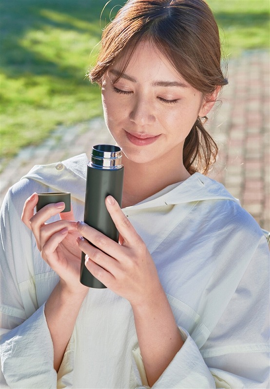 絶妙なニュアンスカラーがおしゃれな、女性やシニアも持ちやすい細身の真空ボトルです。名入れもおすすめ。