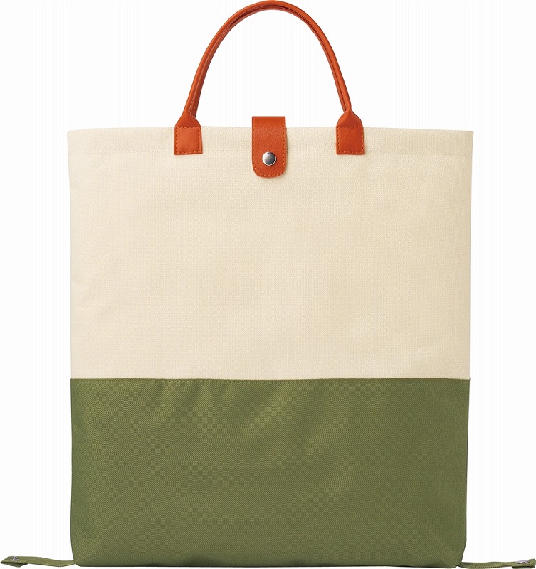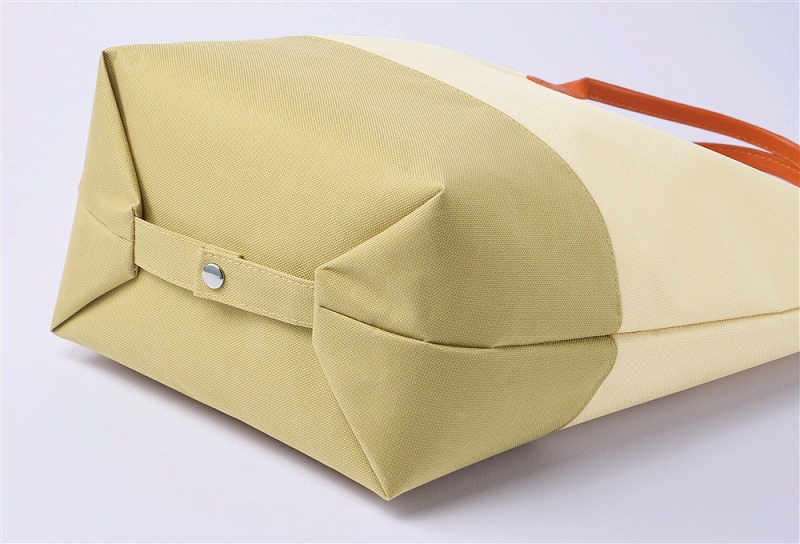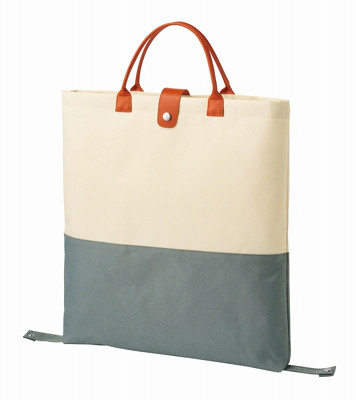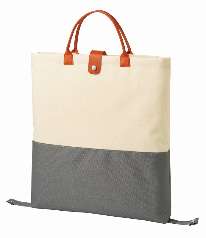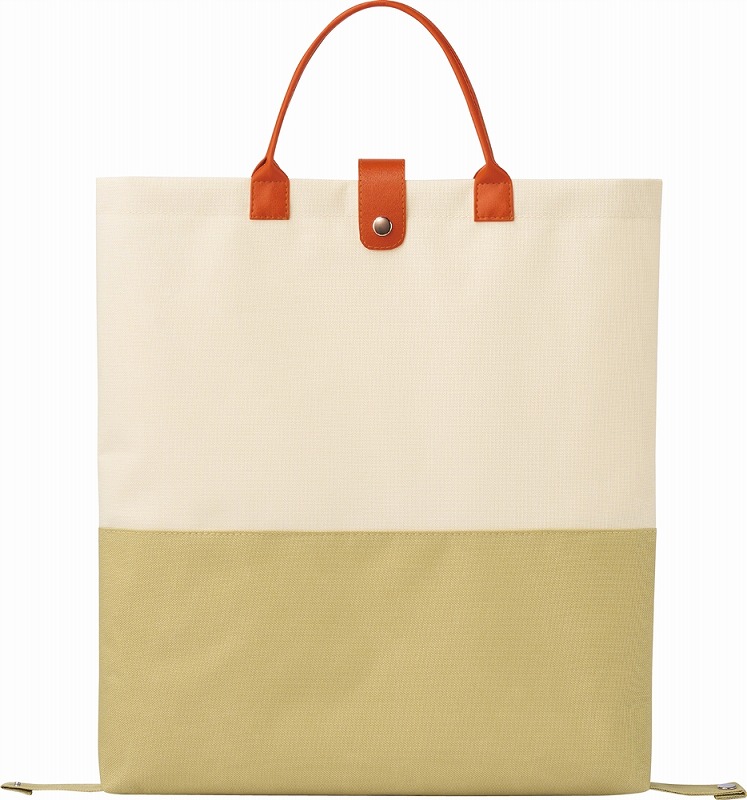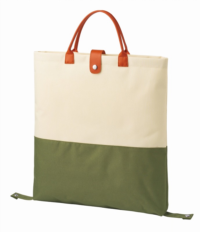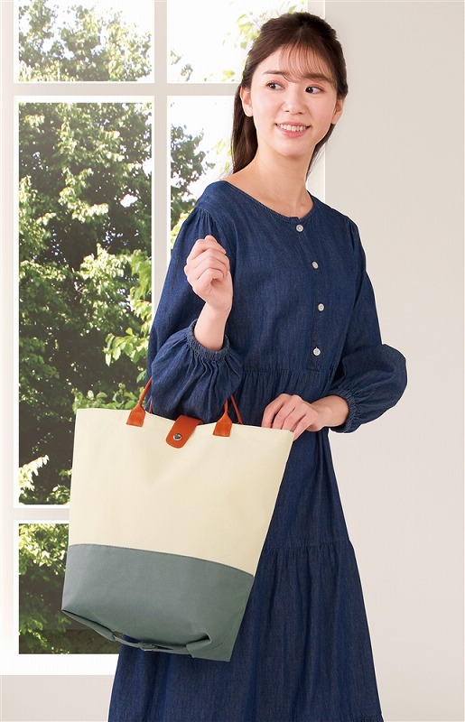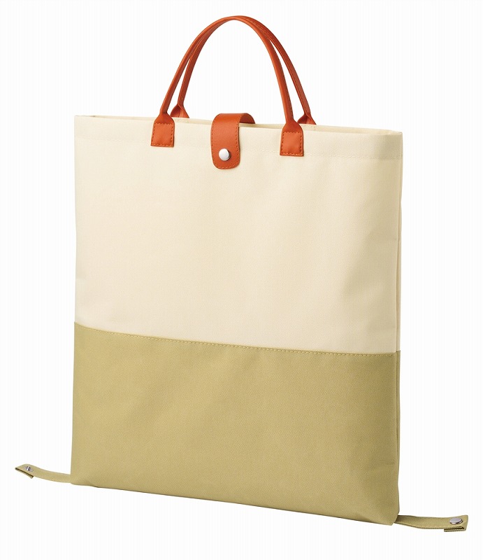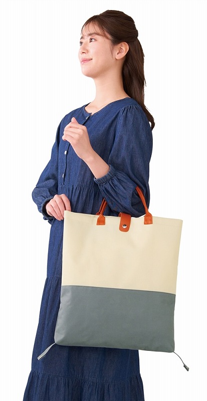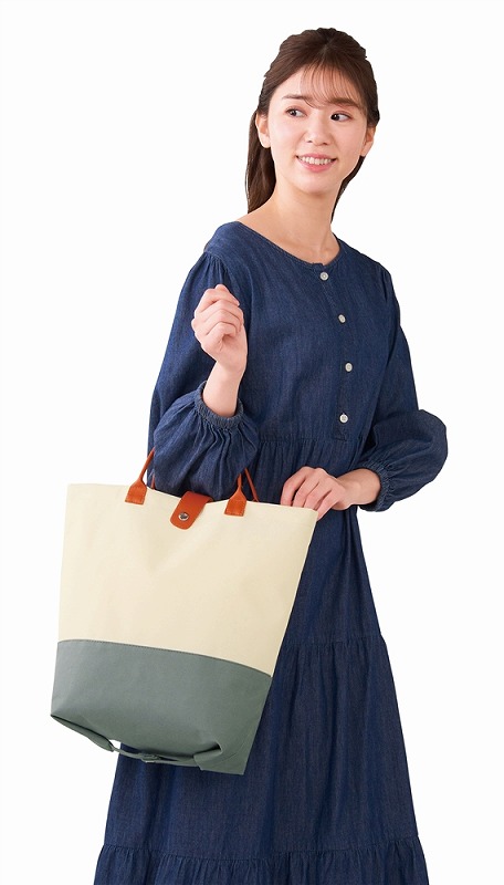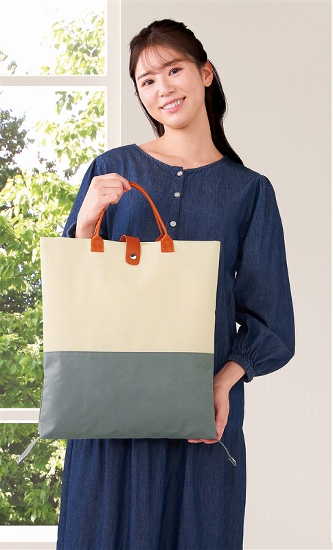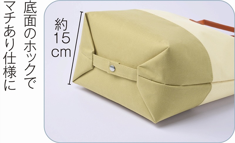 荷物が少ない時はそのままフラットトートとして、荷物が増えたら底面のボタンを留めれば舟形になって容量UP!名入れにもおすすめです。