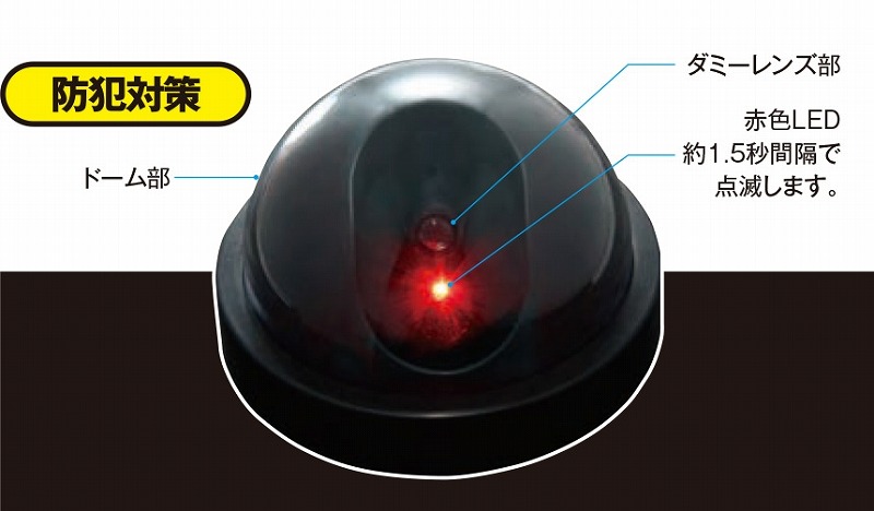 玄関や窓の近く・駐車場などに取り付けておけば、赤色LEDが1.5秒間隔で点滅し続けます。空き巣対策の第一歩は「防犯意識の高さ」をアピールすることではないでしょうか。