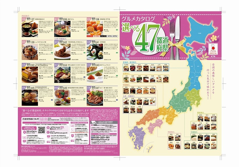 全国47都道府県のグルメギフトメニューの中からお好みの商品をお1つお選びいただき、WEBか同封のご注文ハガキでご注文頂きます。