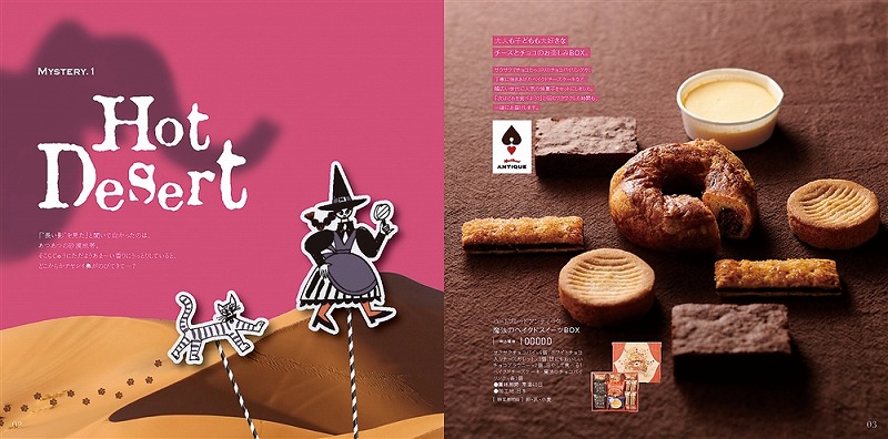 おいしいスイーツが何者かに盗まれた!?「犯人の影を見た!」という目撃情報を元に、魔女パティシエと相棒のネコが犯人を追い詰めるミステリー仕立てのギフトカタログ。4 つのストーリーを読み進めながら、お好きなスイーツをお選びいただけます。