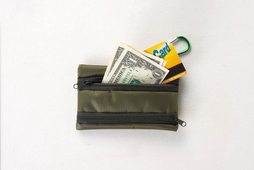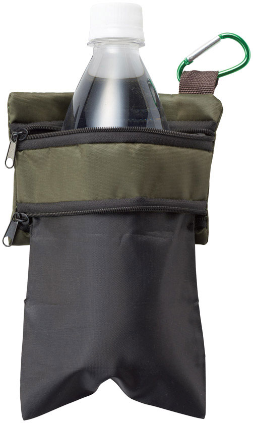 小銭やカードが入るコンパクト形状。 下ファスナーを広げるとペットボトルホルダーに。 お散歩やレジャーに最適。