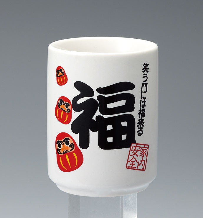 笑う門には福来る。おめでたいデザインの福湯呑みです。