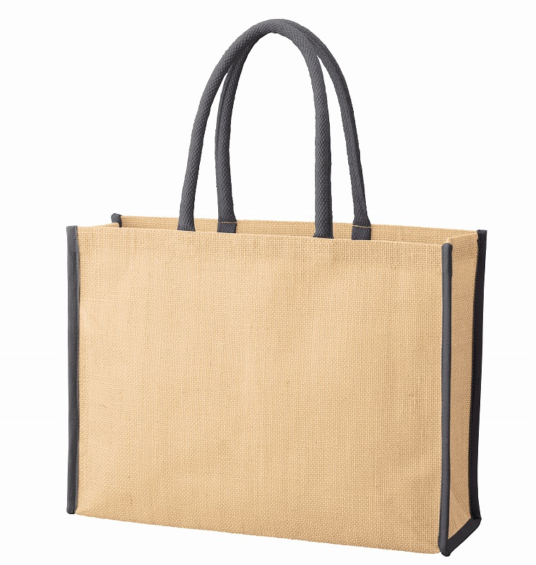 ”販促品 ノベルティ グッズ” 『ジュートスクエアパイピングトート(L) チャコールグレー』