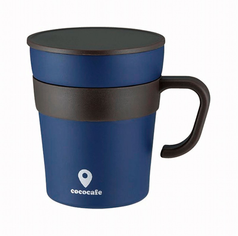 ホッとひと休み、ここがいつものカフェになる。真空二重ステンレスで保温・保冷をキープ!!ちょっと席をはなれる時に、サッとかぶせておけるフタ付なので衛生的。