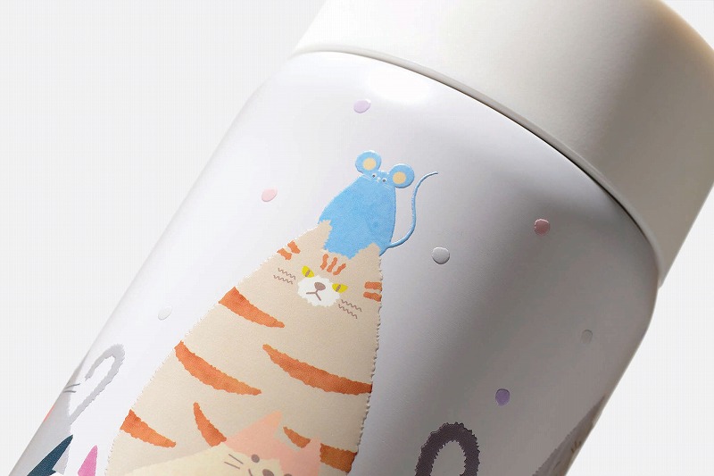 保温効力/57度以上(6時間)、保冷効力/10度以下(6時間)、包装形態は単紙のカラー箱+緩衝材としてダンボールの白箱入(白箱サイズ重量:80×80×230mm325g)。