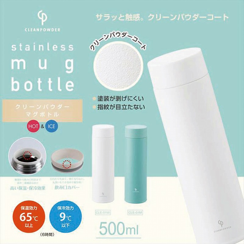 CLE-01W クリーンパウダー 真空二重マグボトル 500ml ホワイト