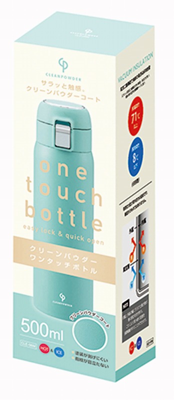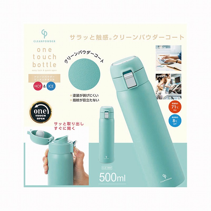 塗装が剥げにくく、指紋が付かない。サラッと触感のクリーンパウダーコートシリーズ。 さわやかで清潔感のあるカラーのワンタッチボトル。 ワンタッチで片手で蓋を開け、さっと飲むことができます。 オフィスやスポーツ、レジャーまで幅広く活躍!