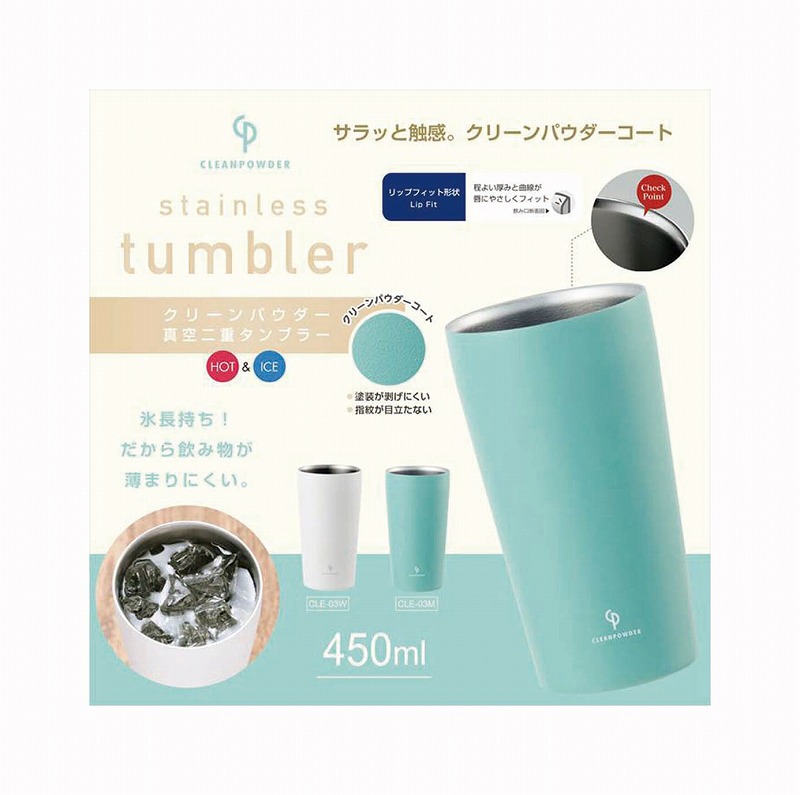 塗装が剥げにくく、指紋が付かない。サラッと触感のクリーンパウダーコートシリーズ。 さわやかで清潔感のあるカラーのタンブラー。 真空二重構造で保温・保冷両用だから、様ーなシーンでオールシーズン使えます。 夏はたっぷり氷を入れても溶けにくく、美味しさをキープします。なだらかな曲線のリップフィット形状で飲み心地まで優しい。
