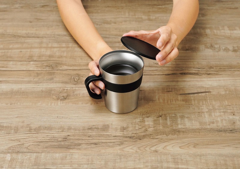 フタ付きなので、美味しい温度をキープ。サッと乗せるだけの簡単フタで、ホコリもふせいで衛生的。落としても割れないステンレス製だから安心してご使用いただけます。