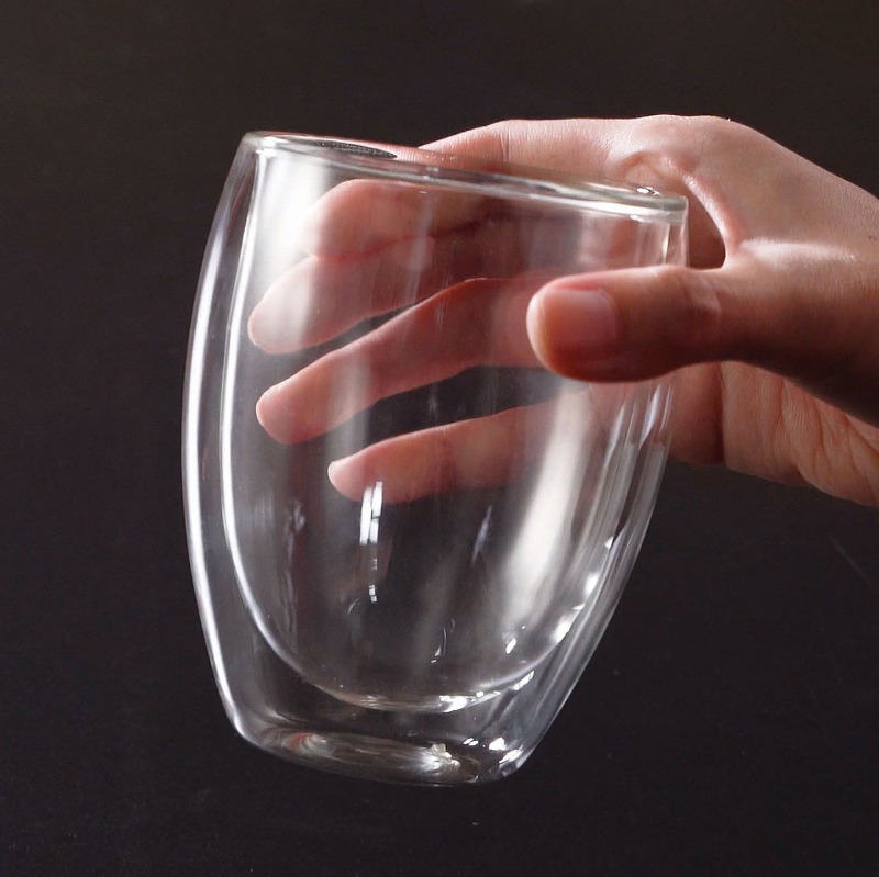 飲みものが浮いているように見える二重構造。見た目に良いだけでなく、ちゃんとしっかり使いやすい。熱い飲みものを入れて持っても大丈夫。冷たい飲みものを入れても結露しにくく冷たさ長持ち。