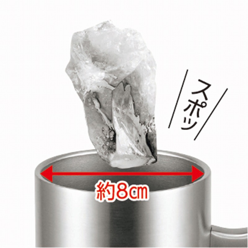 手になじむこだわりのカタチ。広い径だからラクラク氷が入る。冷たさ長持ちハイボールジョッキ、秘密は真空二重構造。