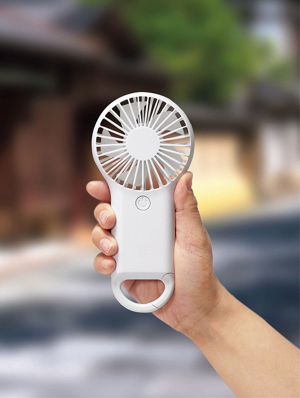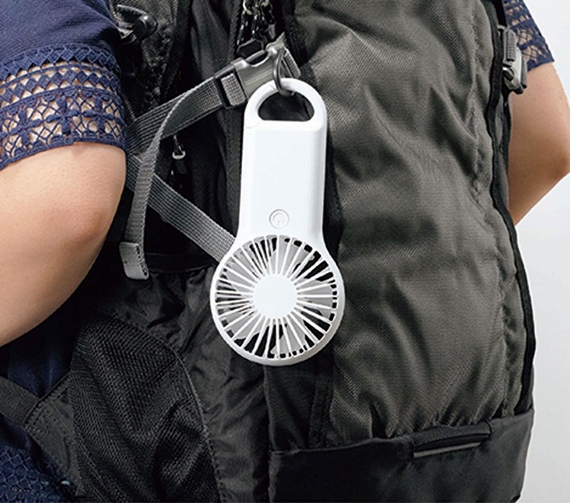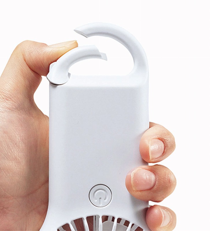 どこにいても、心地よい風を。取り扱いしやすいシンプルなカラビナを搭載。カラビナでバッグやベルトループに簡単装着。カチッとつけてLet’s Go!