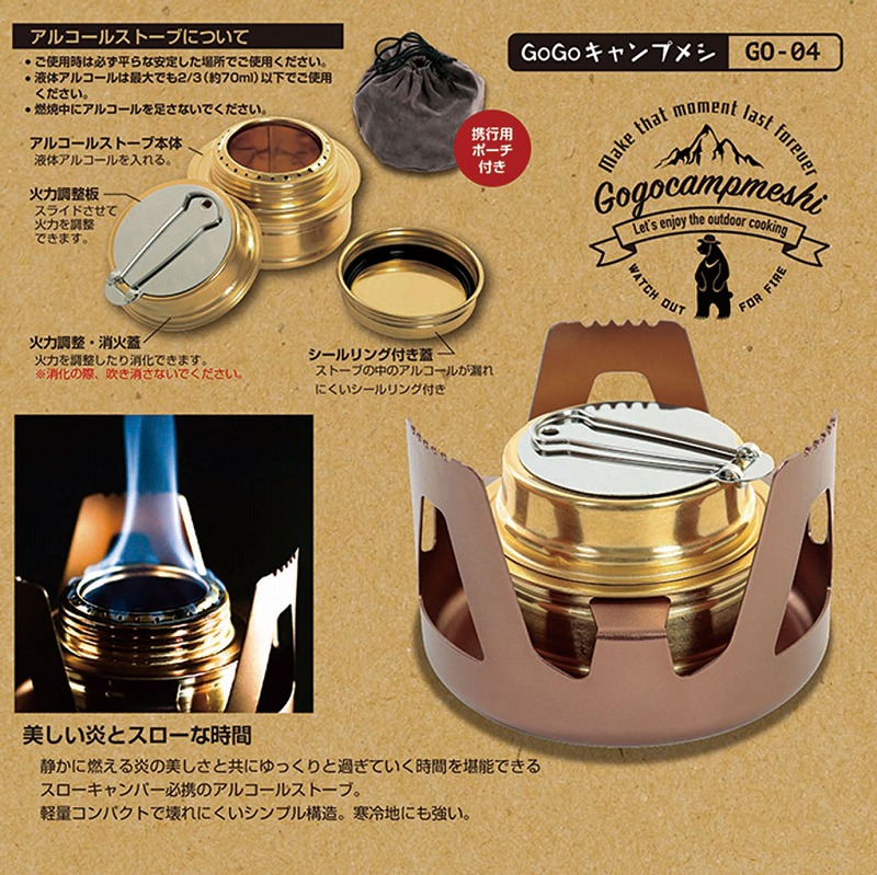 五徳/アルミニウム、アルコールストーブ/黄銅・ステンレス鋼、ポーチ/ポリエステル