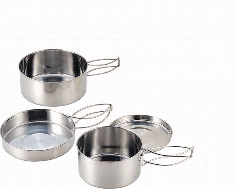 鍋大・フタ兼用フライパン・鍋小・フタ兼用皿、/ステンレス鋼、携帯袋/不織布(ポリプロピレン)