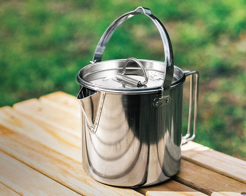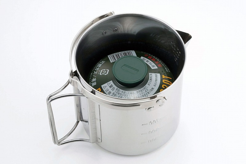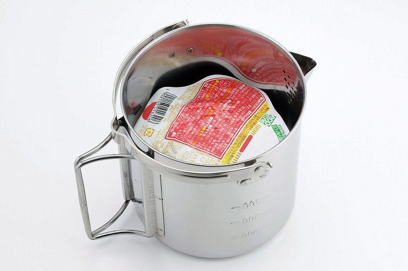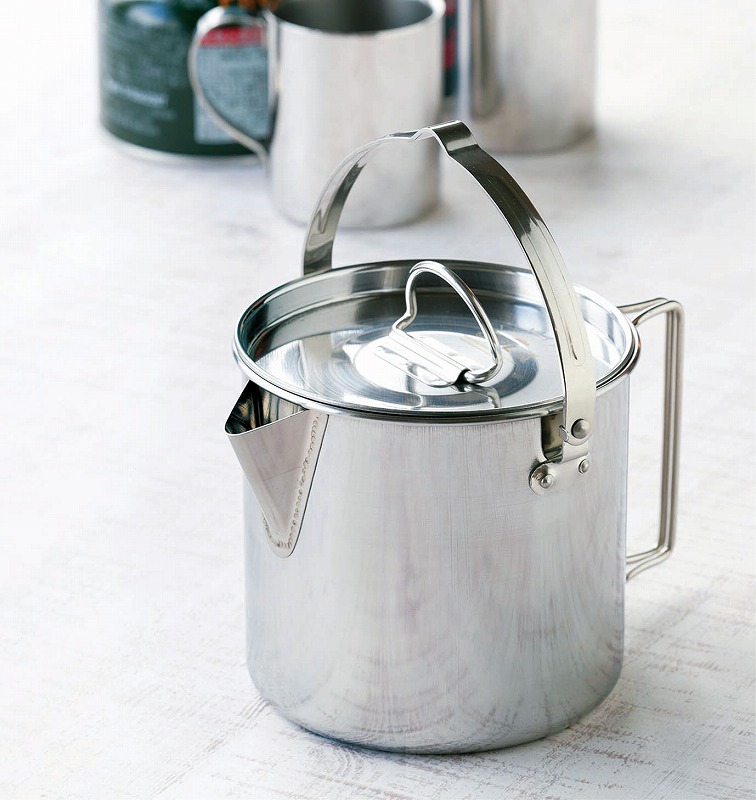 収納性に優れた機能的なデザインのケトル。持ち物が限られるアウトドアや非常用に便利!調理に便利な目盛り付。取手とツルはたためます。