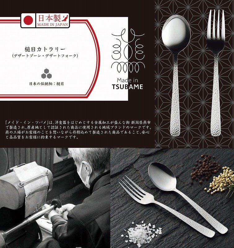 「メイド・イン・ツバメ」は、洋食器をはじめとする金属加工が盛んな街新潟県燕市で製造され、原産地として認証された商品に使用される地域ブランドのマークです。燕の工場がお客様のことを想いながら丹精込めて製造された商品であること、安心と高品質をお客様に約束するマークです。