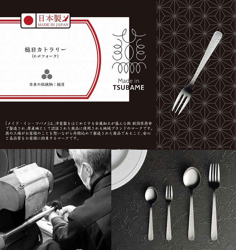 「メイド・イン・ツバメ」は、洋食器をはじめとする金属加工が盛んな街新潟県燕市で製造され、原産地として認証された商品に使用される地域ブランドのマークです。燕の工場がお客様のことを想いながら丹精込めて製造された商品であること、安心と高品質をお客様に約束するマークです。