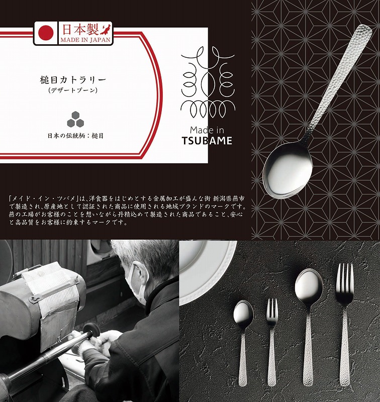 「メイド・イン・ツバメ」は、洋食器をはじめとする金属加工が盛んな街新潟県燕市で製造され、原産地として認証された商品に使用される地域ブランドのマークです。燕の工場がお客様のことを想いながら丹精込めて製造された商品であること、安心と高品質をお客様に約束するマークです。