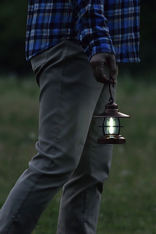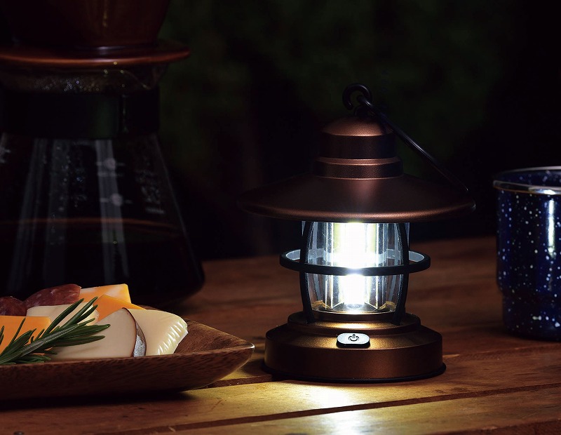 小さくてかわいいけど、しっかり明るいランタンライト。放射状に広がる明るい光。移動や吊り下げに便利なツル付き。