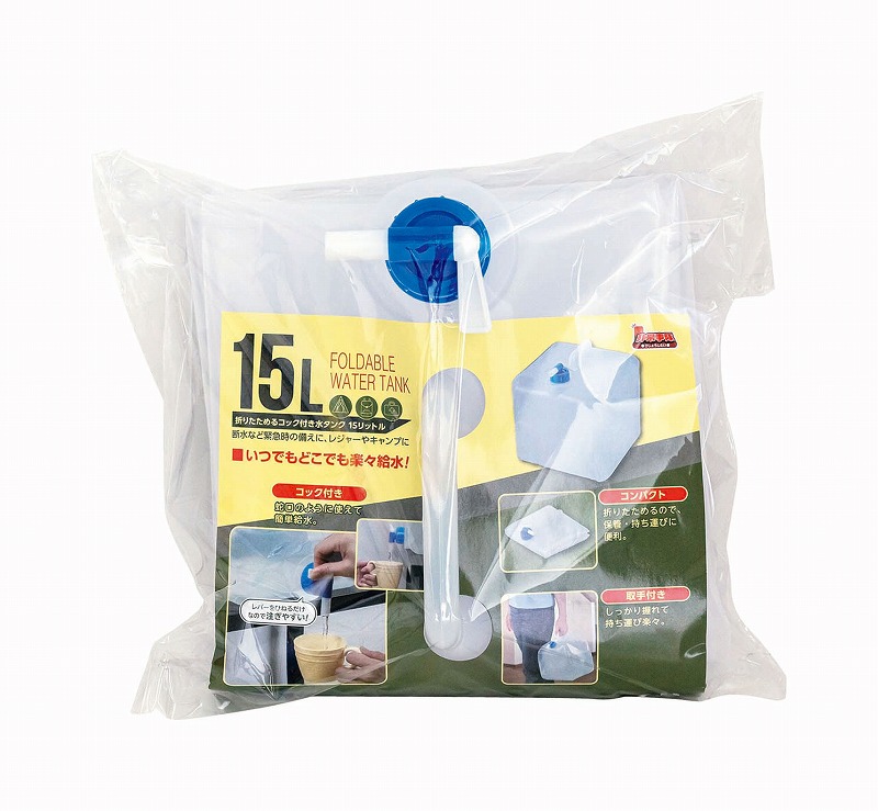 HJT-15 非常事隊(ひじょうじたい) 折りたためる コック付き水タンク 15L